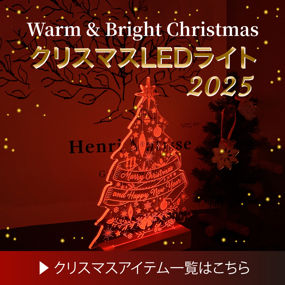 5ミリの透明アクリルをレーザー加工機でカットし、エッチングを施したLEDライトです。小さなスペースでも存在感があります。クリスマスと新年を明るいライトで演出してみませんか。