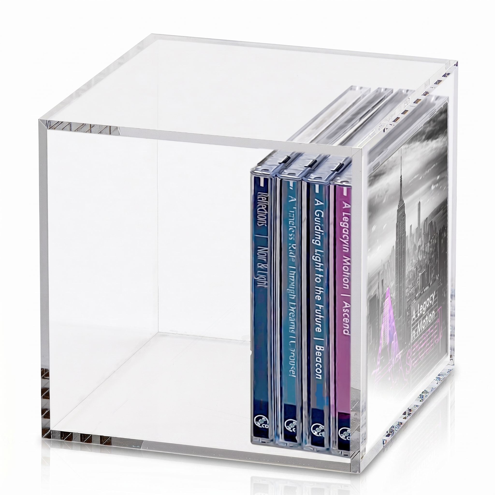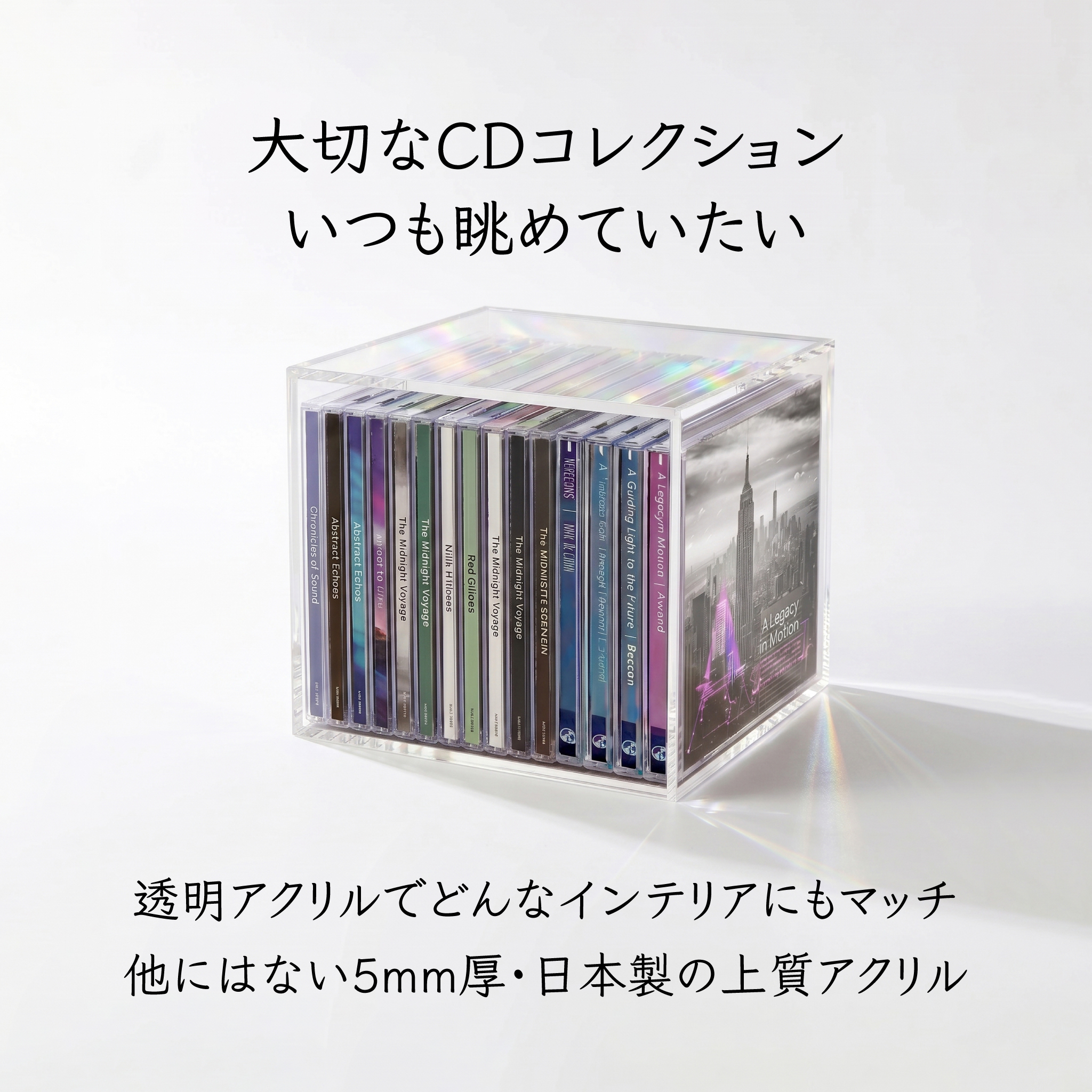 透明度92パーセントの透明アクリル板を使用したCDケース。
