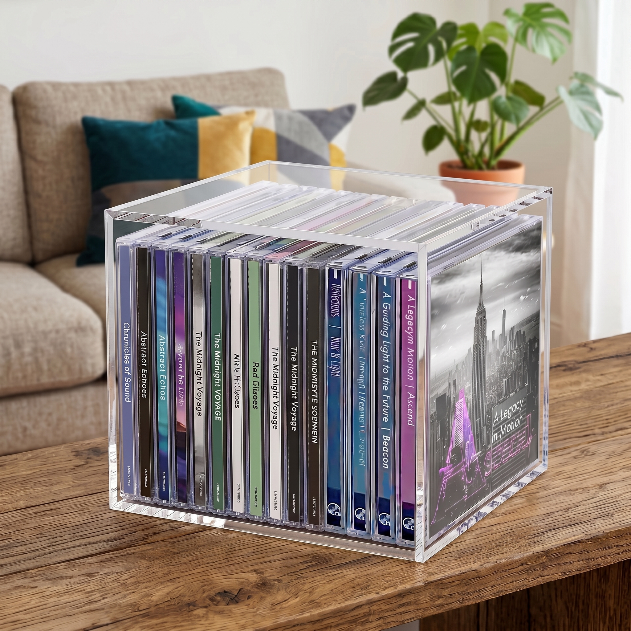 インテリアにCDケースを取り入れてくつろぎの空間を作りたい。 音楽好きの方にはインテリアのこだわりも追求していただきたいものです。 CDケースは背表紙がカラフルなものが多いけど部屋はシンプルに保ちたい。 透明でどんなテイストのインテリアともマッチする F+Tres(エフプラストレス)アクリルCDケース がオススメです。 ご使用の棚の上にピッタリサイズでセミオーダーできます。